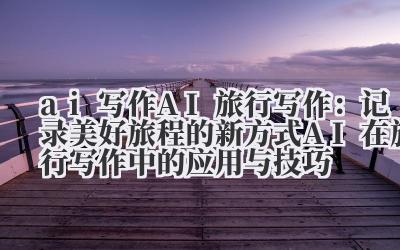 拥抱 AI 旅行写作,记录你的美好旅程,让每一次旅行都成为永恒的回忆。