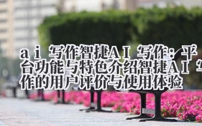 当然,每个人对AI写作工具的需求和使用体验都不同。如果你正在寻找一款高效、实用的写作工具,不妨试试智捷AI写作,相信它会给你带来惊喜。