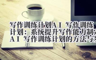 一、为什么要制定 AI 写作训练计划?