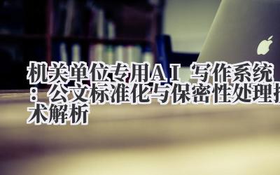最近机关工作越来越忙啦,加班成了家常便饭,写公文更是占据了大量时间!还好最近发现了一个神器——机关单位专用AI写作系统,真的提升了不少效率!今天就来给大家好好解析一下这个系统,特别是它的标准化和保密性处理技术,绝对干货满满!