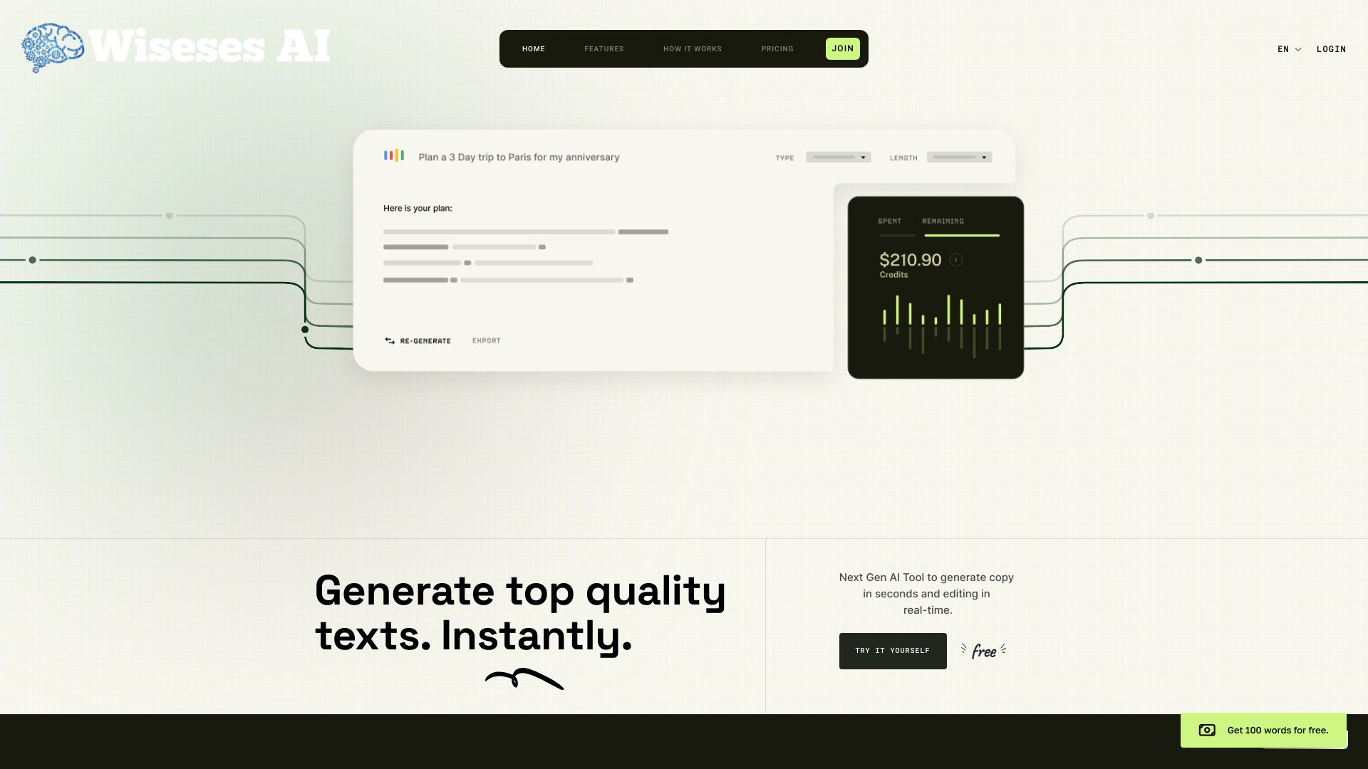 以下是一个使用Wiseses AI生成文本的示例: